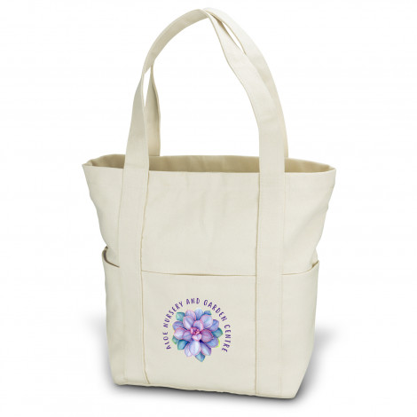 Classic canvas tote bag which is manufactured from 50% natural 450gsm cotton and 50% Polyester Canvas. It has a metal zip closure is concealed and can be hidden to ensure your belongings are safe. Other features include side pockets and front and back pockets for optimum storage.