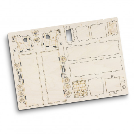 Step into a world of creativity and craftsmanship with BRANDCRAFT’s wooden models. Designed to unleash the inner child in any audience, this model of a large truck is expertly laser cut from an A4 sheet of Basswood, a lightweight and strong wood perfectly suited for crafting. The interlocking design means that pieces easily slot together and no tools are needed for assembly. Presented in a brandable cardboard sleeve with assembly instructions, this is an engaging promotional product or gift for adults and children alike. Add your brand to the natural Basswood material or add your brand and colours to the default digital template to bring your brand to life.