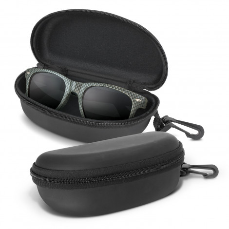 Retail quality sunglasses with an impact-resistant polycarbonate frame and arms. Both the frame and arms are finished with a stylish carbon fibre pattern. They are fitted with CE standard 100% UV400 lenses which provide both UVA and UVB protection. Malibu can be presented in a microfibre pouch, Montego Sunglass Case or Stylo Sunglass Pouch for an additional cost.