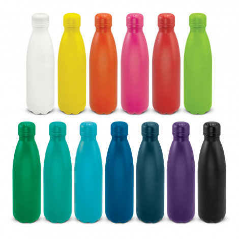 Trendy 500ml double wall, vacuum insulated stainless steel drink bottle with a stunning powder coated finish. It will keep drinks cold for 24 hours or hot for up to 12 hours. Mirage has a powder coated screw on lid as well as a classic stainless steel option. The bottle and lid can be mixed and matched in any colour combination from the standard colours. Up to five different colour combinations are included in the price and more are available for an additional charge. Mirage is BPA-free and laser engraves to a shiny steel finish. It is presented in a black gift box and an optional gift tube is available on request. This product is not dishwasher safe and handwashing is recommended.