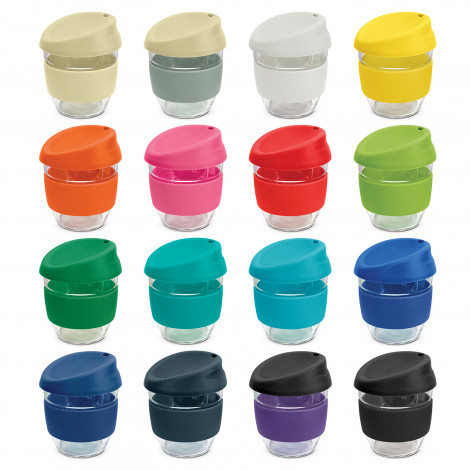 Elegant 250ml reusable borosilicate glass coffee cup with a secure push on silicone lid and a wide heat-resistant silicone band. Borosilicate is lightweight, exceptionally strong and shatter-resistant. It is a BPA-free choice for a clean, pure taste and is a natural alternative to single-use paper cups. The lid and band can be mixed and matched in any colour combination from the standard colours at no extra cost. Up to five different colour combinations are included in the price and more are available for an additional charge. Nova Cup is presented in an unbleached cardboard gift box with a window to show the branding and product care instructions are printed on one side. An optional gift tube is available on request. This product is not dishwasher safe and handwashing is recommended. Nova Cup is protected under New Zealand Design Registration No. 426637 and Australian Design Registration No. 201916426.