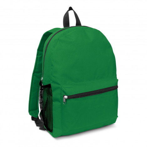 Affordable backpack which is manufactured from 600D polyester. It has a zippered main closure and adjustable woven shoulder straps with padding. Other features include a large zippered front pocket, a woven carry handle and a mesh drink bottle holder.